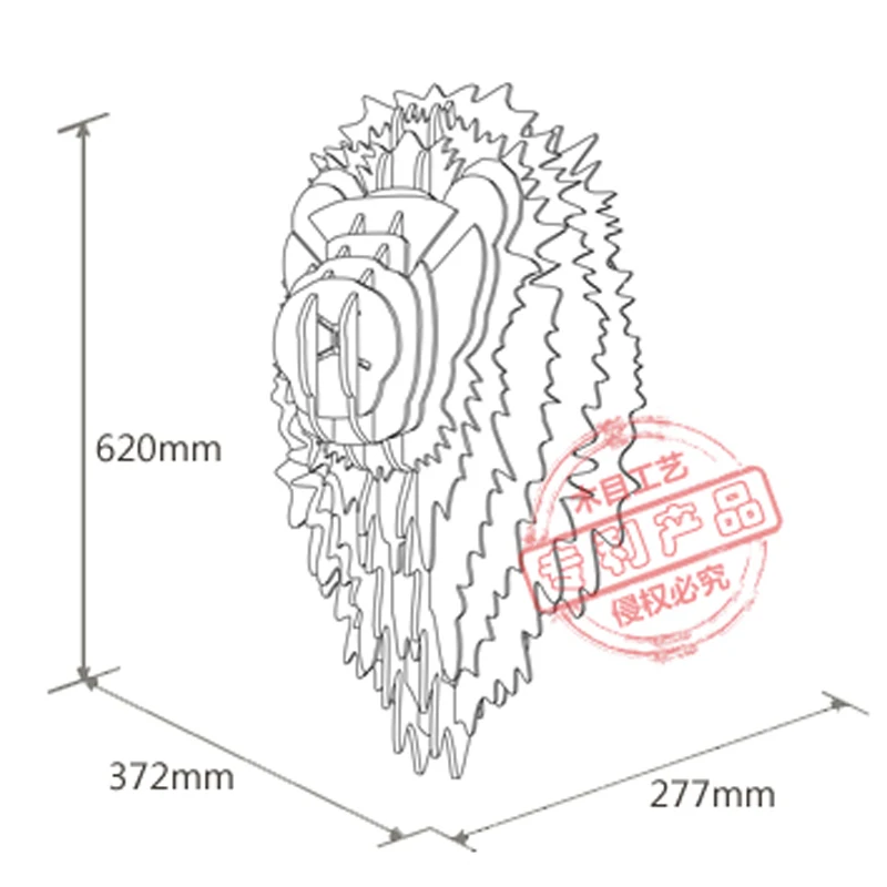 62cm Large Wooden Lion Head For Wall Decoration Creative Nordic 3D Puzzle Animal Head Wall Hanging