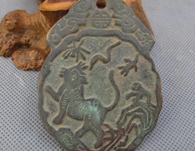 Hot Sale 76MM China Folk Old Bronze Wolf Monkey Elderly Ride donkey Wall hanging Pendant