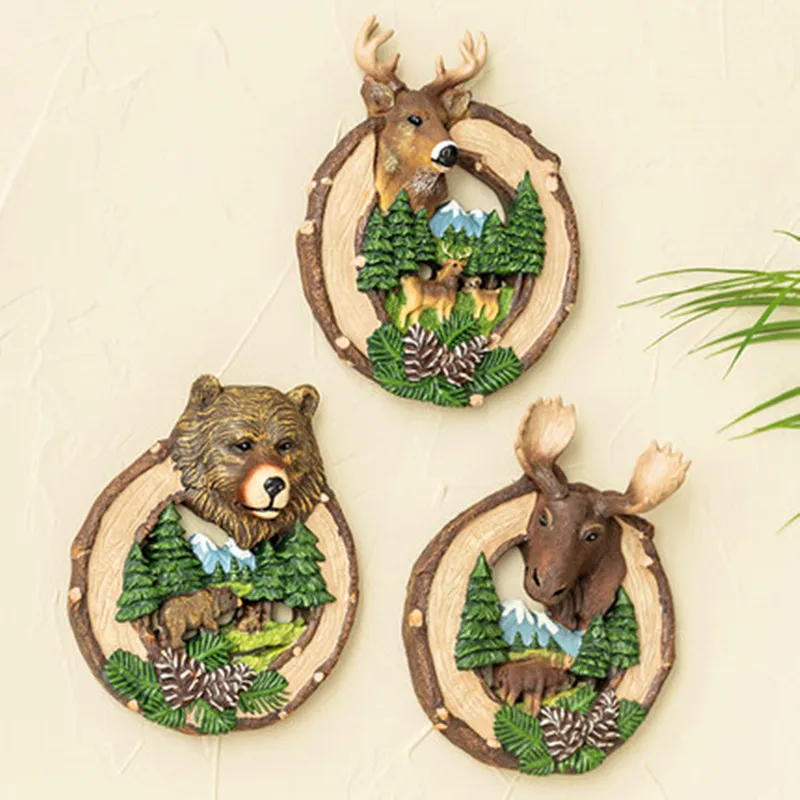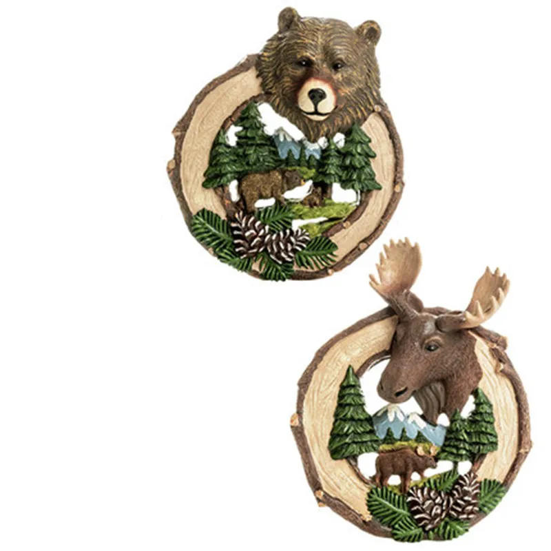HOT SALE American Simulation Stereoscopic Elk Bear Resin Wall Painting Creative Home Wall Art Hangings Decor