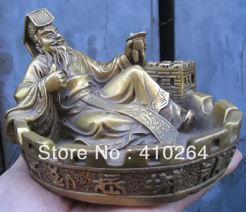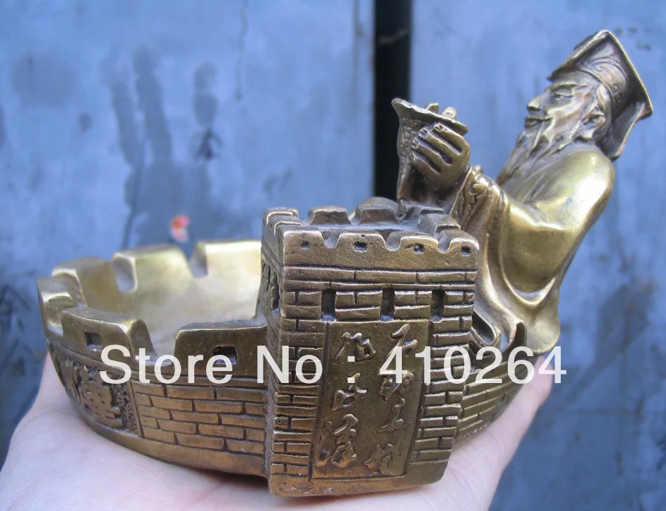 beautiful rare The Great Wall Qin Shi huang Ashtray bronze statue