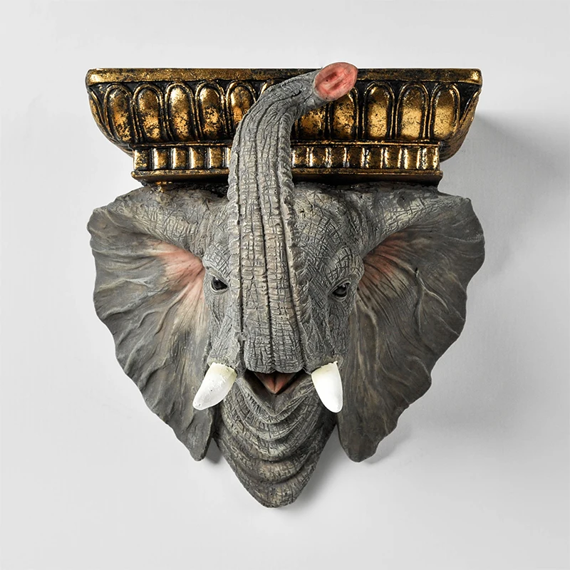 Mascot Elephant Animal Head Art Sculpture Escultura Home Office Wall Hanging Decoration Storage Hol