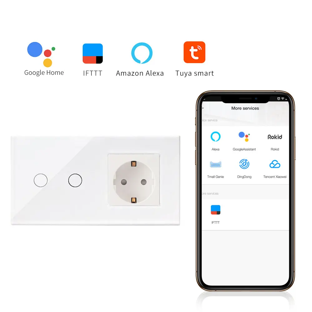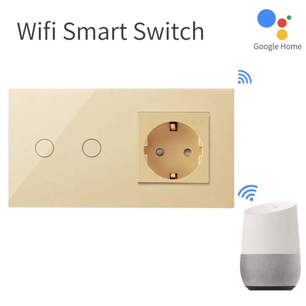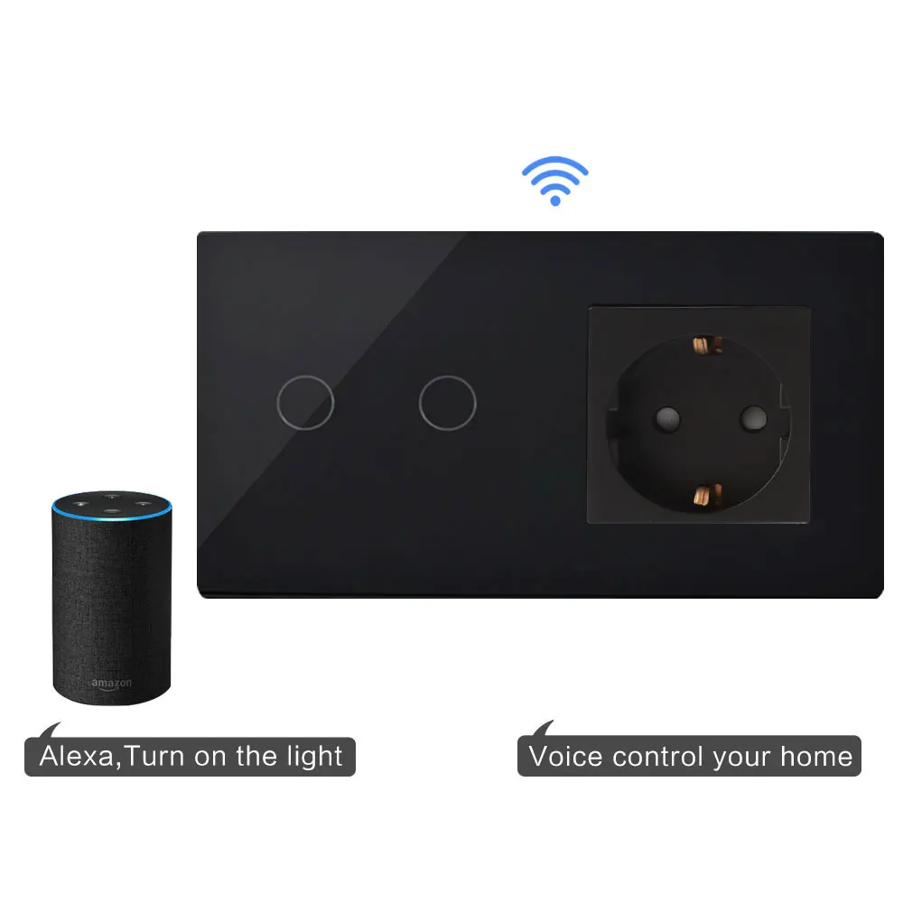 Best Bingoelec Smart Home Automation Wall Switch EU Standard 2 Gang 1 Way Wifi Glass Panel Touch Switch
