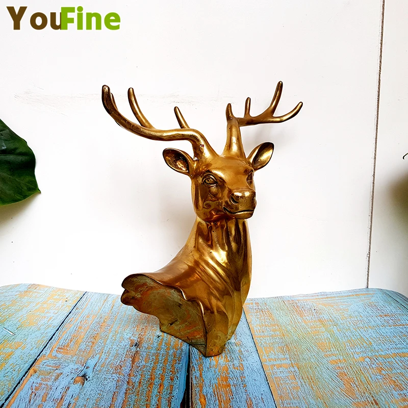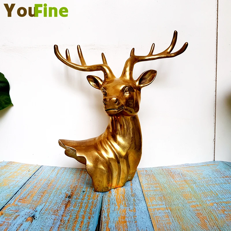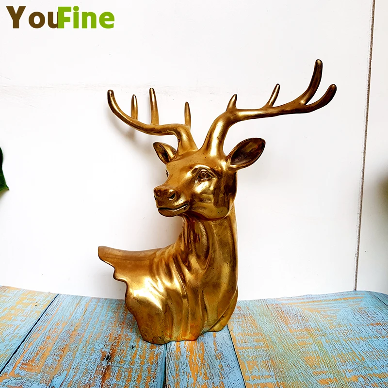 Classical bronze buck deer head Simulation animal bust indoor desktop decoration Wall pendant suppo