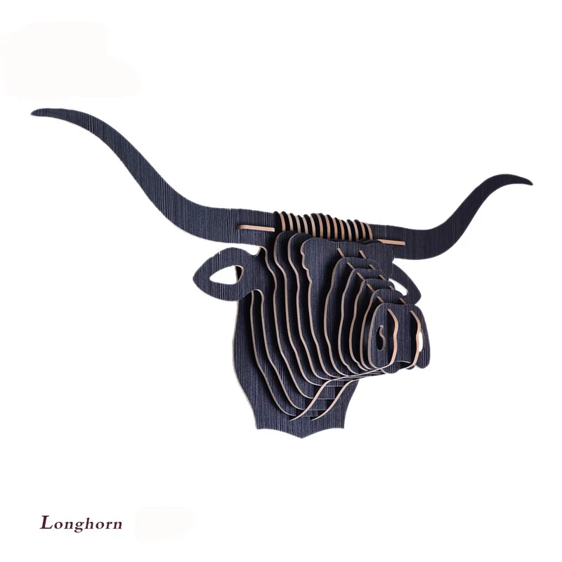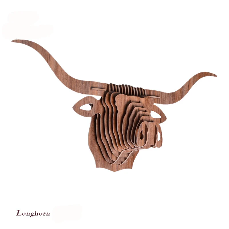 Wooden BUFFALO Head 3D Jigsaw Puzzle Wood Sculpture Home Wall Hanging Interior Decoration WDM009M